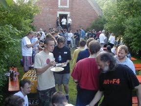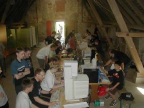 das waren neben einem kompletten Netzwerkequipment (Danke an Biber und Robbi) und einer soliden Stromversorgung (thanx Stromi und Martin Vill) die benötigte Hardware, um das erste LUG-Camp des Jahrtausends zu starten. Als dann noch die rund 100 Besucher aus Deutschland und dem benachbarten Ausland ankamen, konnte es losgehen. An dieser Stelle ein Extragruß an unsere Gäste aus Südschweden - die Kieler. Sie waren übrigens die ersten, die sich für das kommende LUG-Camp angemeldet haben: herzlich willkommen zum LUG-Camp 2001.