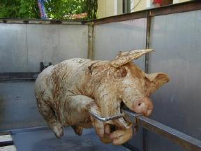 Das LUG-Camp 2000 fand letztes Jahr zum ersten mal statt, und zwar ebenfalls auf dem Karlshof. Oben seht ihr einen Blick auf die die ans Haupthaus anschließende Tenne. Das ist ein ziemlich großer, cooler Raum, den wir für die Vorträge und das gesamte Programm genutzt haben. Nach dem Riesenspaß von letztem Jahr ist eines sicher: Der Karlshof ist absolut LUG-Camp tauglich :-) Auf den beiden anderen Photos seht ihr das LUG-Camp Spanferkel die arme Sau und unser kulturelles Highlight Bauchtanz mit Resi und ihren Mädels.